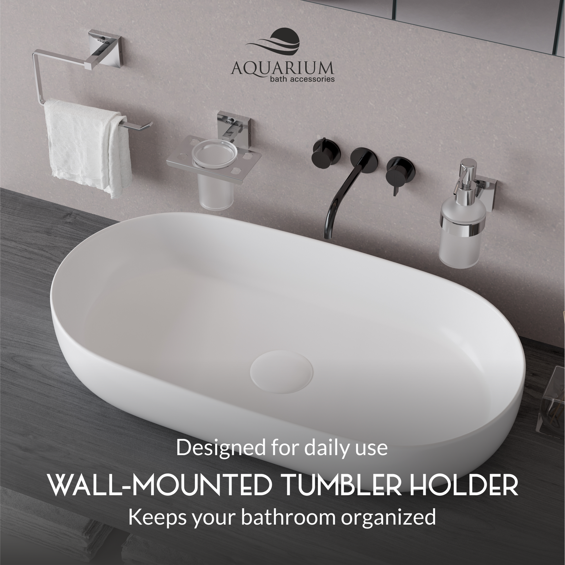 The Tumbler Holder with Glass offers a chic and functional solution for keeping your tumbler securely in place, adding a modern flair to your bathroom decor.